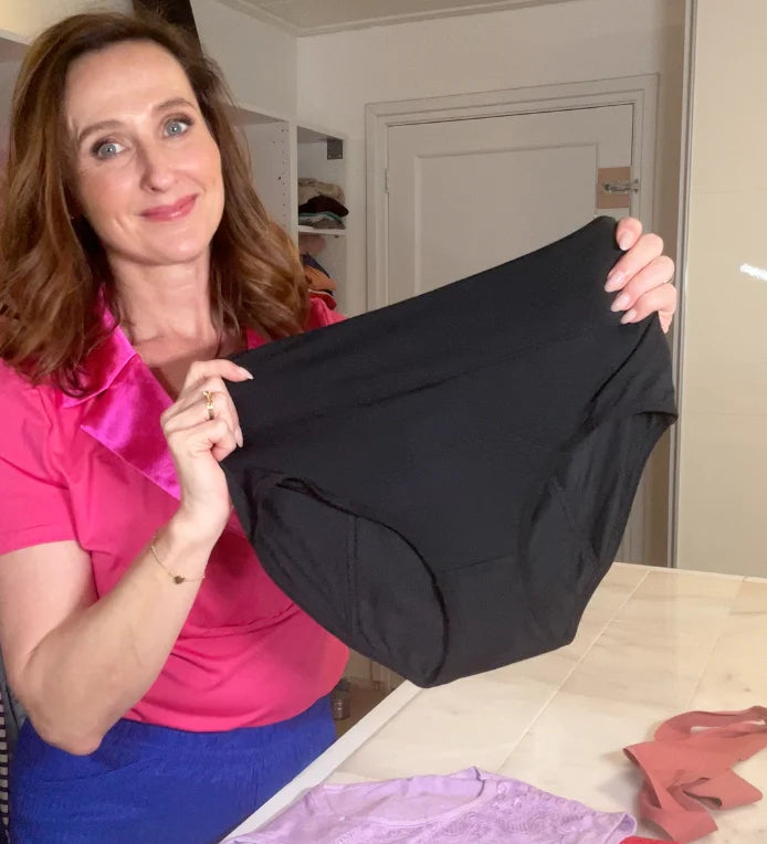 I’m Paula – and for more than 30 years I’ve been crafting leakproof underwear by hand, piece by piece, in my small atelier here in Germany. This work is something very personal to me. Every stitch I sew reflects my commitment to women who deserve something better – better comfort, better materials, and better design. I select every fabric myself, and I make no compromises. I craft each piece as if it were for someone I love – because chances are, someone like you will wear it and carry it through the day.
